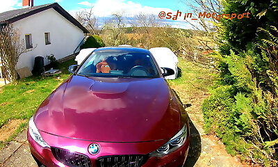 chubby BBW in cute glasses masturbates herself in the van