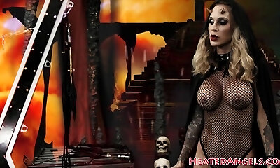 The Knky slut goddess "Dark Dea" pulverizes the huge dildo XL of MrHankey'sToys