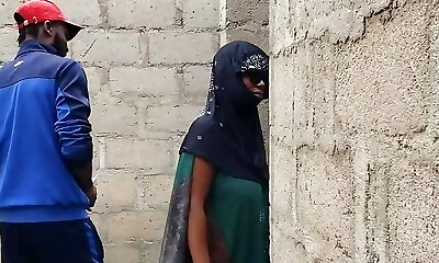 Big-titted Nigerian slut penetrating in an uncompleted building.