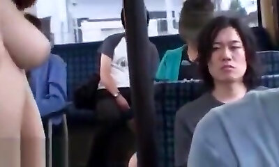Buxomy, Asian brunette is getting molested in a public buss, but she likes it a pile