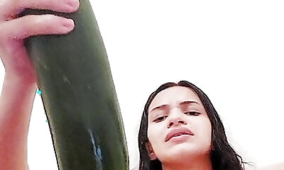 I broke into my pussy sitting on the cucumber and even left my backside all crimson