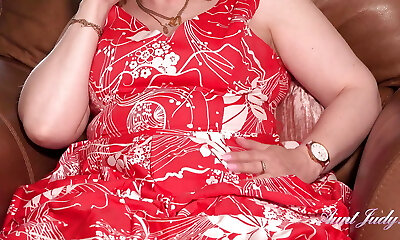 AuntJudys - 53yo Mature Inexperienced BBW Redhead Fiona has Phone Sex in Tights & Garters