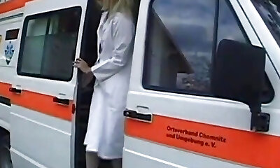 Busty German MILF riding a loaded lollipop in her dark-hued stockings