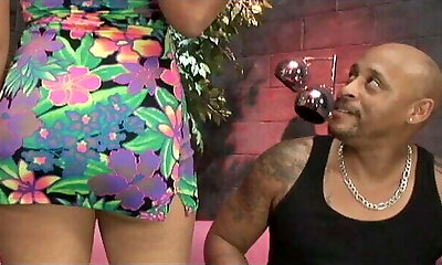Tiny brunette deepthroats black and white cocks