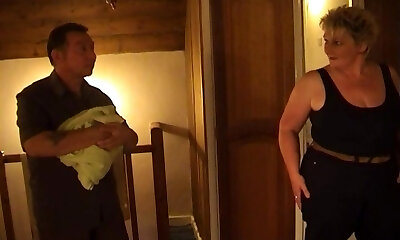 B4A2402-A fat-jugged married woman enjoys an obscene massage from a visiting masseuse