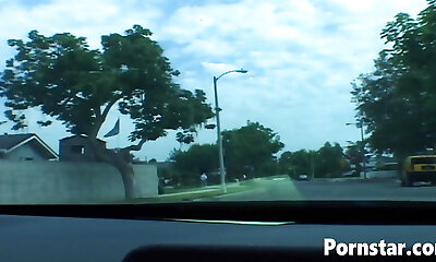Lesbian fucked mature milf in the van. Huge tits and fat ass in sexy underwear. POV.