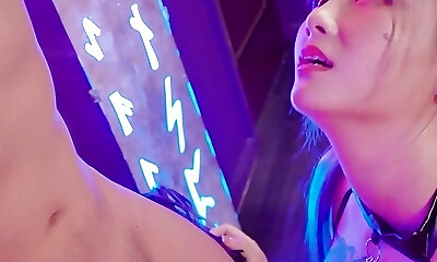 Unearthly tattooed oriental teen Jackie Lin is deep-throating my dick