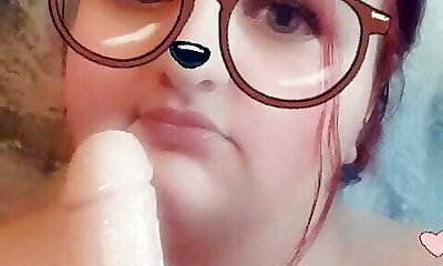 Chubby dame with lots of experience plays with glass toy once again